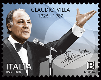 Poste Italiane comunica che il 29 gennaio 2026 verrà emesso dal Ministero delle Imprese e del Made in Italy un francobollo commemorativo di Claudio Villa, nel centenario della nascita, relativo al valore della tariffa B pari a 1,30€.Tiratura: duecentomilaventicinque esemplari.